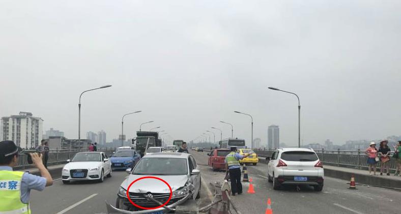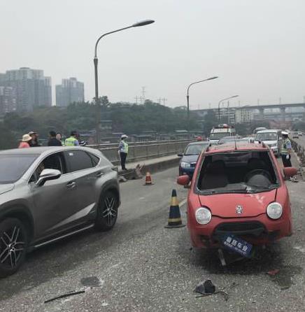 除龚某所驾车辆之外,当轿车撞上中间隔离栏时,被撞飞的石头砸向对面车道行驶过来的三轮车挡风玻璃,导致三轮车挡风玻璃破碎。而三轮车由于紧急刹车,造成了驾驶员和一名乘客受轻微伤。由于假期车流量大,事故还造成了碚东大桥严重拥堵两个多小时。事后经过民警询问得知,当时小车驾驶员低头操作手机导航,没有观察路面情况,所以才导致事故发生。