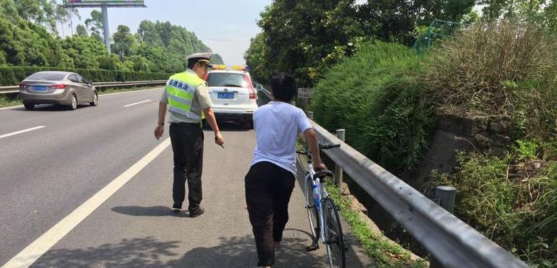 6月1日,高速执法人员在巡逻时发现一男孩推着自行车在高速路上行走,上前询问发现,原来男孩是被黑车司机半路甩客,而遭到抛弃的原因,竟然是驾驶员嫌弃他携带的行李太多。