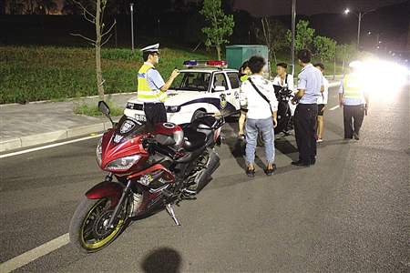 交巡警在查处两轮车违法行为 市交巡警总队供图