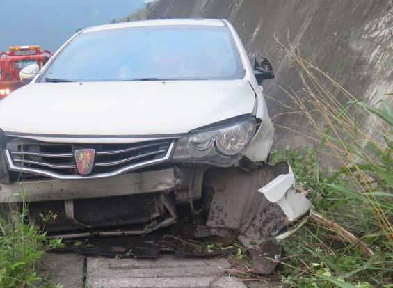 近日,在沪渝南线高速路上,一辆小轿车在经过荔枝乌江大桥附近时,突然失控,冲出高速路。