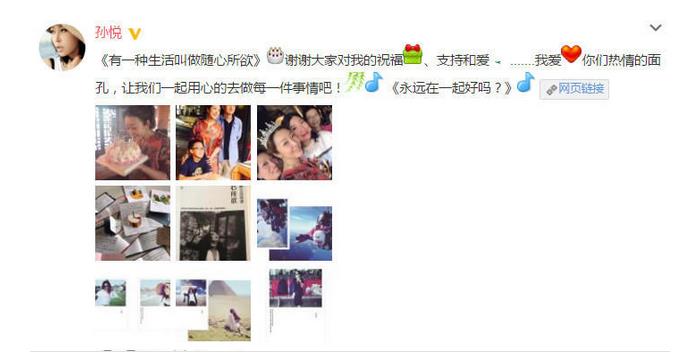 她还写道:《有一种生活叫做随心所欲》谢谢大家对我的祝福、支持和爱……我爱你们热情的面孔,让我们一起用心的去做每一件事情吧!