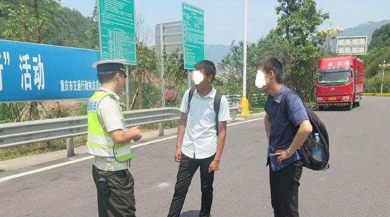 7月3日上午11时35分许,两名年轻的小伙子站在高速路中间招手拦截准备上道行驶的车辆。两名年轻小伙子系四川文理学院毕业的大学生,而且是山西老乡,通过网络平台投递简历后,结伴先到开州一家公司应聘工作后,急于去万州另一家公司应聘工作,加之家庭比较贫困,身上又没有多少钱了,迫于无奈就想到在高速路入口拦截车辆去万州。执法队对两名大学毕业生拦截车辆的行为进行了批评教育,同时对两名大学毕业生的身份进行了核实;准备联系客运公司。此时,一名好心的过路师傅得知情况后,愿意将两名大学毕业生送至万州应聘的公司。两名大学生对自己的行为深表歉意,并对执法队员和好心师傅的热心帮助深表感谢!