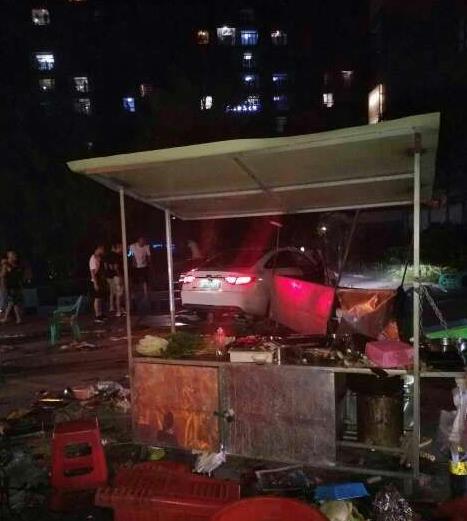 情侣驾车途中争吵拉扯 轿车撞向路边烧烤摊后逃逸