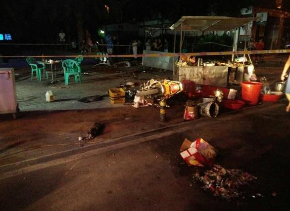 据目击者讲述,事发时,一辆白色轿车先是撞倒一辆停放在烧烤摊外的摩托车,然后又撞向烧烤摊,肇事后立即逃逸。事发后,警方立即赶往现场了解情况,现场拉起了警戒线。