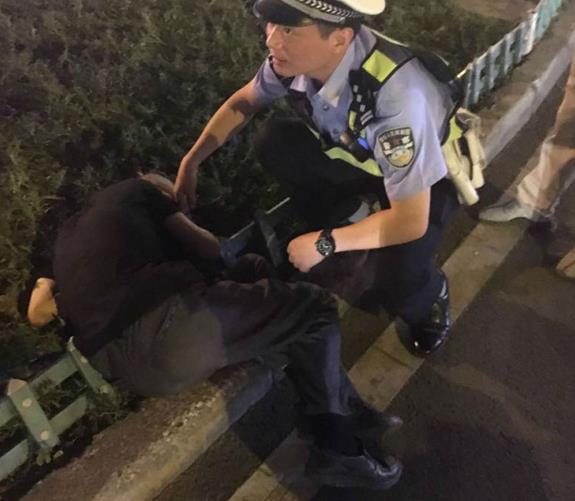 晚上10点半左右,沙坪坝区110民警接到报警后,在桥下中间垒砌的矮小花台边,找到了这位老人,他闭着双眼侧趴在花台边的小栅栏边,头部低垂,两腿屈伸在公路上,不时有车辆经过,非常危险。