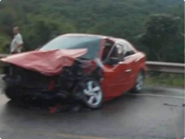通过行车记录仪显示,红色轿车原本在靠右道路往木洞方向行驶,在与灰色车辆相距100米左右,突然越过实线,向灰色车辆撞去。