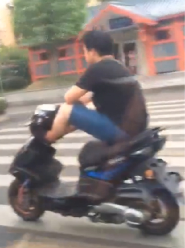 在路上,胡女士远远地看见在金域蓝湾小区路段,有一名黑衣男子双脚搭在电瓶车车头上,一只手握住龙头。