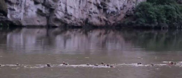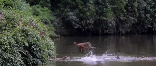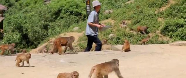 重庆男子大吼一声 百猴齐渡江抢饭吃