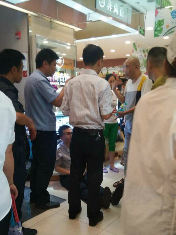 因为一个碎鸡蛋 保安躺在地上紧紧抱住顾客大腿