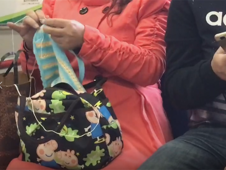 秦女士介绍说当时是上班的早高峰,车厢内陆续有人不断进出。阿姨毫不顾忌车厢拥挤,手持尖细的钢针悠然织毛衣,阿姨织毛衣的手法看似十分娴熟,毛线、毛衣针飞快地在指间转动,并且动作幅度还很大,针尖不停地变换着方向。