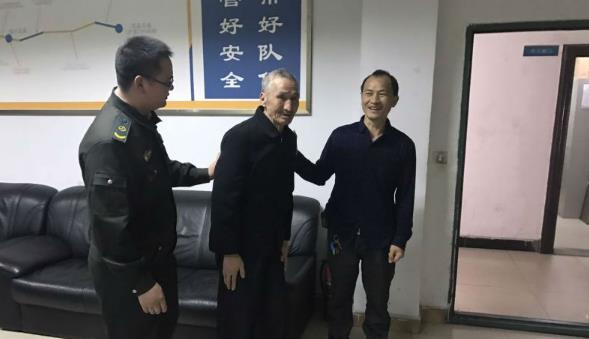 这名老人衣着整洁,但言语含糊,很难正常的交流沟通,身上也无有效证件。为了保障老人的安全,执法人员将老人带回大队。回到大队后,执法人员找来纸和笔,老人接过纸和笔后写下了:董长中,新明镇南印大队和董正友的字样。老人写下董正友时口里一直念着“儿子”,执法人员估计董正友很有可能是老人的儿子,决定以此为突破口,加大查找力度,最终找到垫江县新民镇南印寺村有一名叫“董正友”的信息与老人提供的信息很吻合,于是立即与当地政府取得联系,在当地政府的帮助下,董正友很快来到了大队。经过确认,董正友就是老人的儿子,老人的名字叫董长中,老人写下的是自己的名字、地址和儿子的名字。