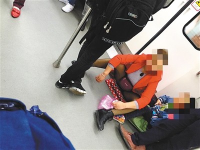地铁上女子双腿往前摊开 这个坐姿有失大雅