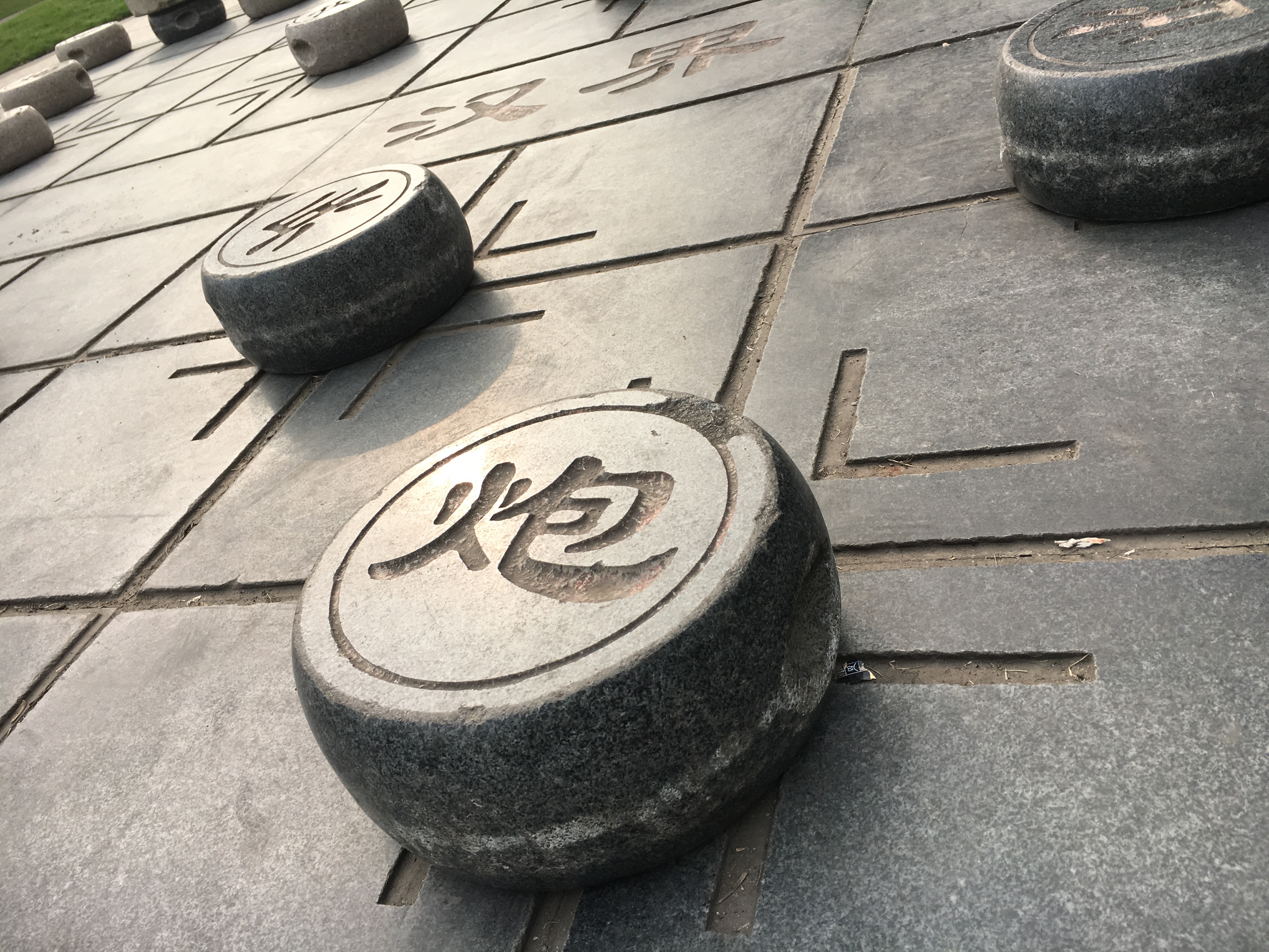 心想这么大的棋子一方面可以作为观赏,另外也可以作为累了之后可以休息的“凳子”。