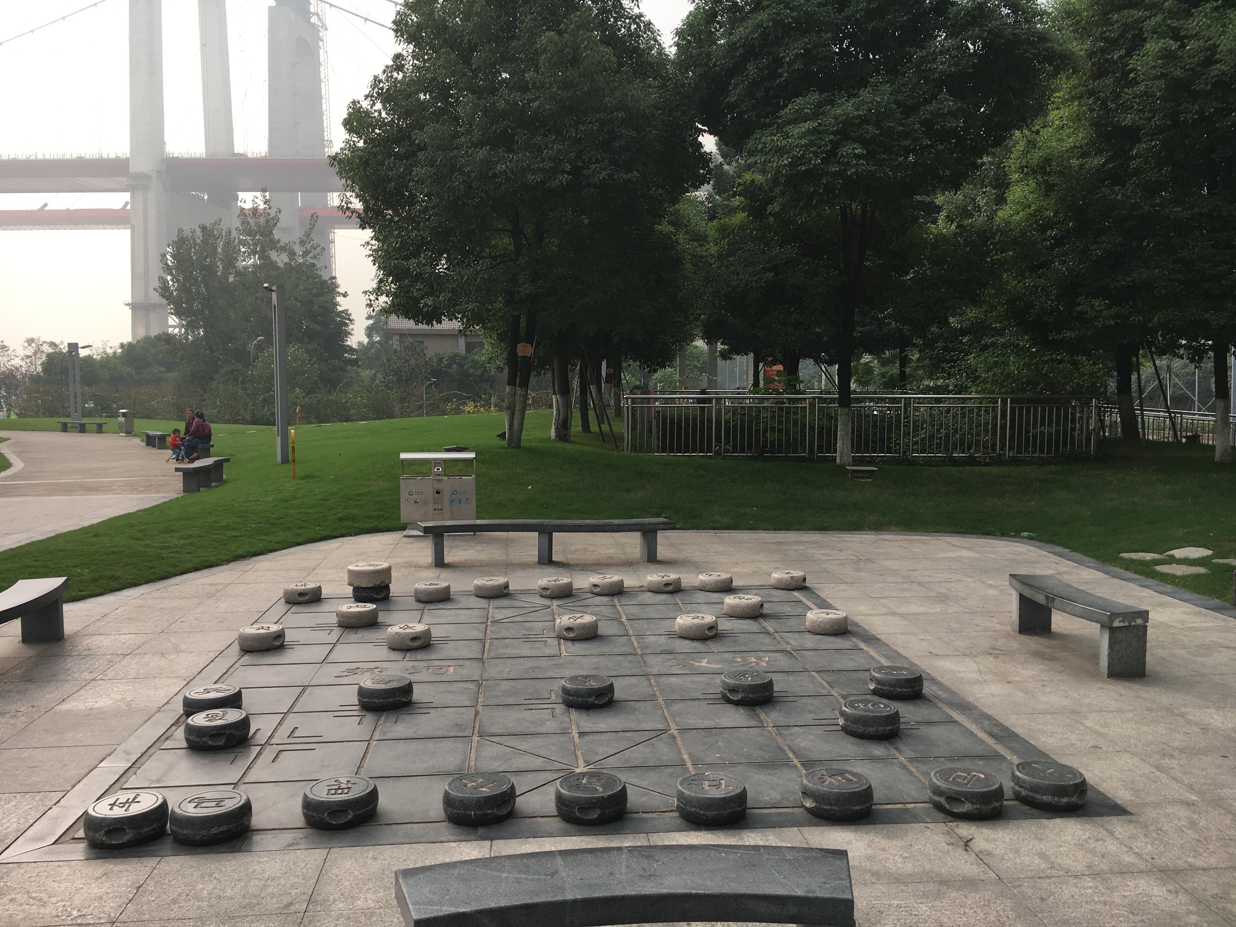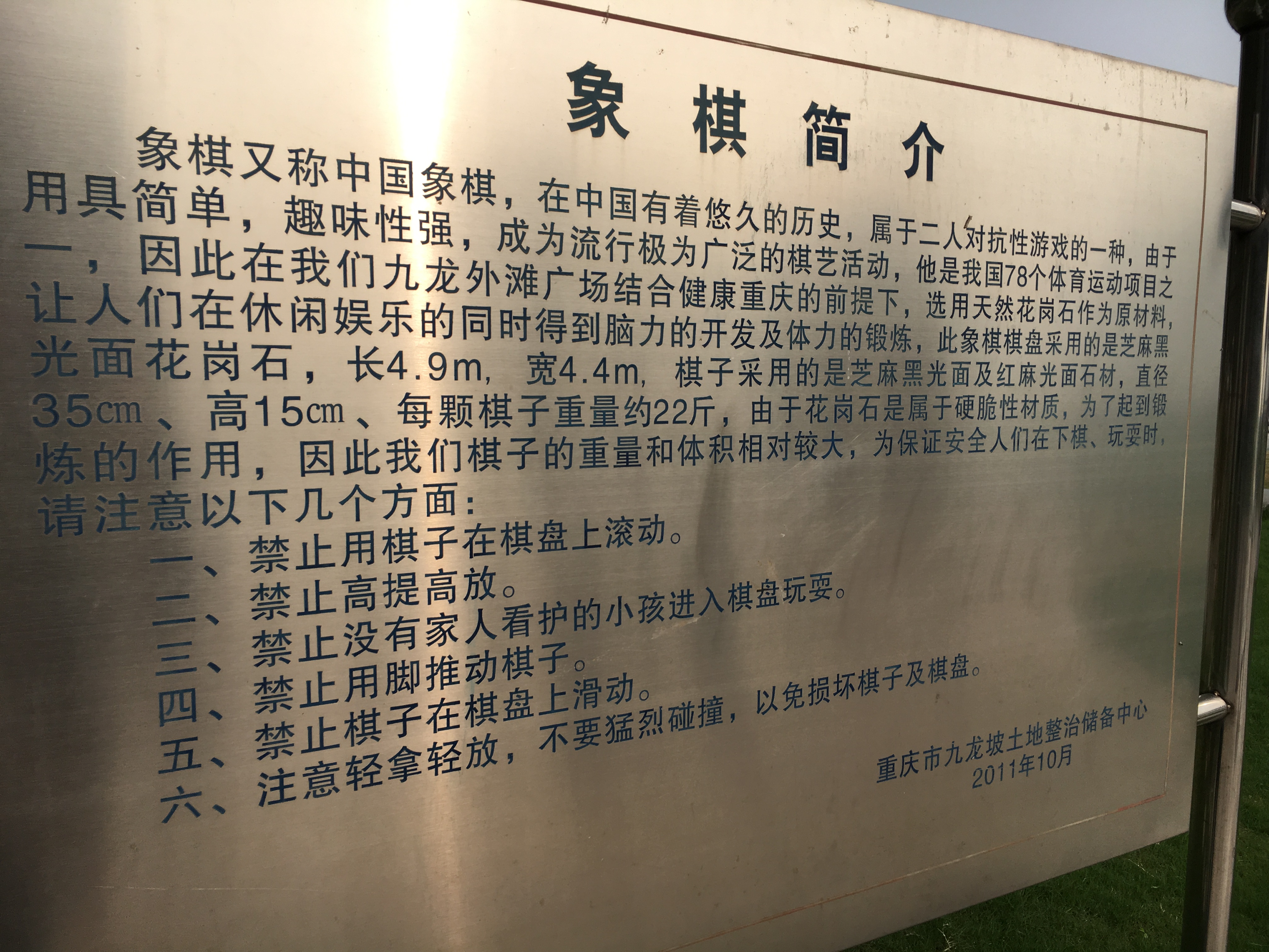 2017年11月2日,市民彭先生在杨家坪九龙外滩看到一幅巨型象棋,令人叹为观止。棋盘如篮球场,棋子比座椅大。