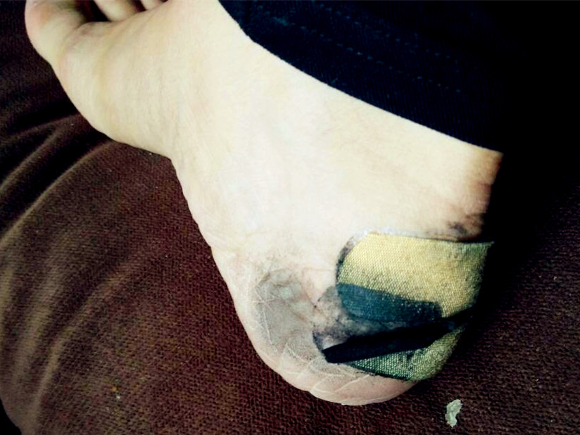 一开始是因为鞋子硬,把脚后跟的皮都磨破了,李女士连忙贴了两块创可贴,这个情况李女士认为可以接受,很多朋友也有过这样的遭遇,毕竟是新鞋子,比较硬有会磨脚很正常,很朋友遇见了也是这样处理的。