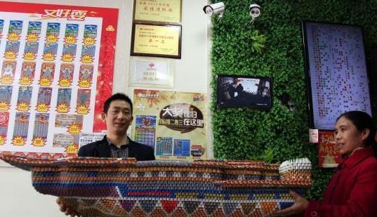 11月13日,重庆男子在彩票店里展示自己用废旧彩票叠的“航母”。据了解,重庆长寿41岁市民孟道平是当地福彩工作站的一位工作人员,由于平日里顾客会将使用过的废旧彩票留在店里,便在工作之余叠出“航母”。