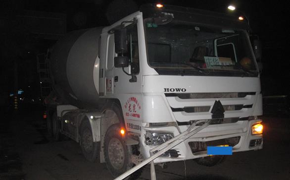 11月15日凌晨2点20分,北碚交巡警支队二大队民警接到报警,有人在歇马圣堡宾馆路段一辆罐车撞上隔离栏。