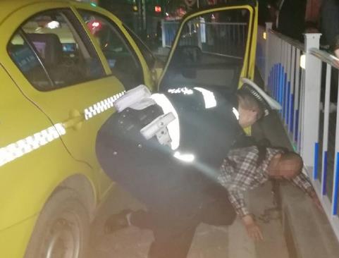 淡定“的哥”遇上醉酒男吐满出租车 警民联手将其送回家中