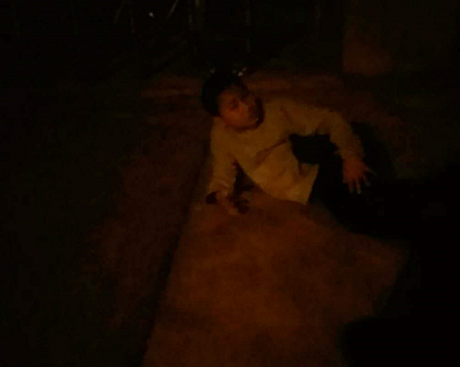 大晚上在路边溜着溜着就摔了 倒在地上不能动弹