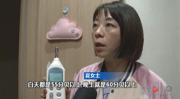 今年10月1日,夏女士搬进新房,位于日月光中心广场R3的8楼。8楼以下属于商业区,夏女士的新房则处于住宅区的底楼。入住后夏女士发现,房间里有低频的嗡嗡声,24小时不间断。在现场,夏女士向记者展示了晚上录制的噪音视频。