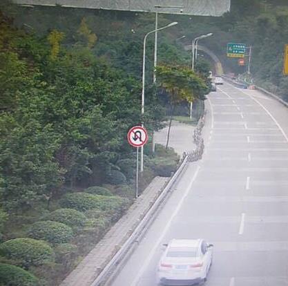 车子开在西永立交路段,突然就在隧道出洞口处的中间隔离带掉头。