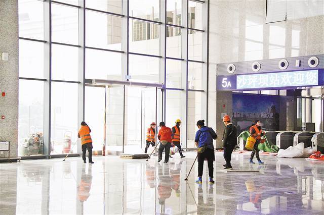 12月19日,沙坪坝火车站综合交通枢纽候车大厅,工作人员进行清理保洁工作。当日,该候车大厅移交成都铁路局。成都铁路局通信段、供电段、车务段等将加紧进行候车厅相关设备调试,力争项目尽快投用。(来源:重庆日报)
