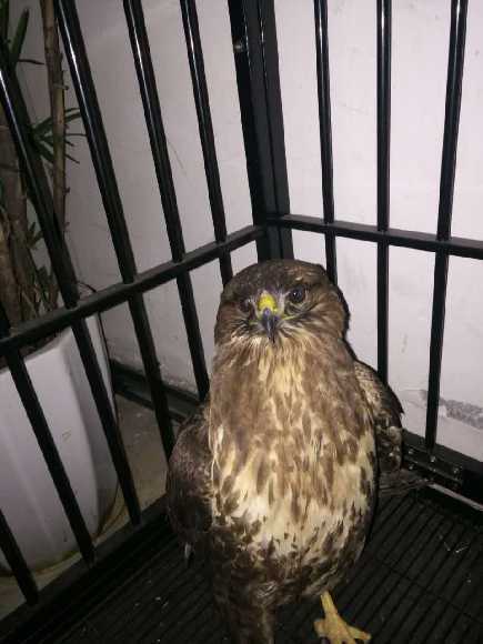 通过观察,民警认为,这只鹰伤得不轻,应当对其采取救治措施。于是,民警用网兜将鹰控制住,小心翼翼把鹰带回派出所后,及时将其送进宽敞的铁笼中,并对受冻的鹰作了适当的保暖处理。