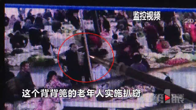 老人正在逛菜市场 背后伸出“一只手”