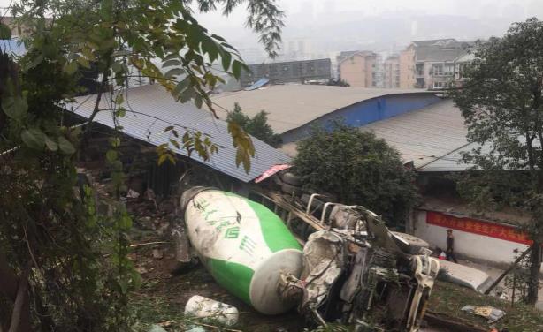 可是好好的围墙为什么会倒塌呢?原来,事发时,在南岸区长生桥镇黄明路下坡弯道有一辆水泥罐车正在行驶,可随即这辆罐车却突然冲出了公路,且刚好撞到汽修厂的围墙上。罐车由于巨大的冲击力侧翻在了围墙外的小路上,罐车司机受重伤。