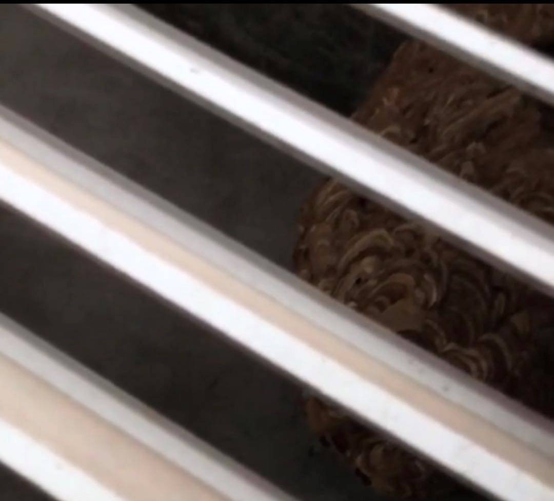 两年多前的一天,小莲妈妈在家里发现了马蜂的踪迹,无意间竟然看到女儿家主卧外墙处有一个大大的蜂窝,小莲看到后着实被吓了一跳。这个马蜂窝大概有外墙空调格栏6、7格长,而格栏间距大概是3厘米左右,所以估计这个马蜂窝也有近20厘米长。
