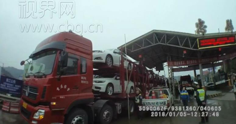 1月5日,重庆市高速执法四支六大队执法人员在沪渝高速公路忠县收费站开展车辆检查中,发现一辆车牌为渝D的商品运输车,车身长38.6米,远远超过规定的18.1米以内。