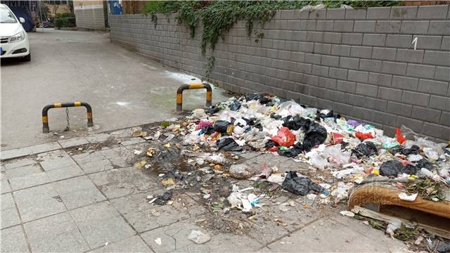 据附近居民介绍,这堆垃圾堆了好长时间了,没人打扫,而且一些不自觉的人看到这里反正有那么一堆垃圾,也跟着往这儿扔,因此垃圾也越来越多。