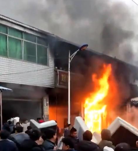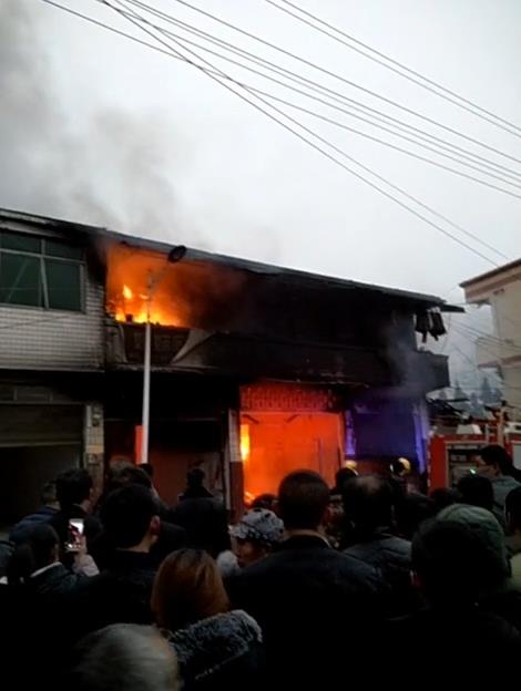 2018年1月26日下午,重庆彭水大同镇一门市突发火情,火焰猛烈黑烟弥漫。