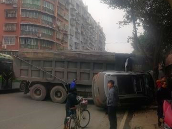 大货车“无人驾驶”突然下滑 撞翻小轿车