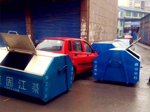 蓝色的垃圾箱上,清楚的写着几个大字:环卫作业,请勿阻挡。这是怎么回事?不由得让人脑洞大开。