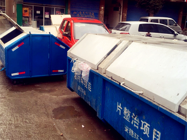 三轮车被围在垃圾箱中间,估计车主见后也是一脸无奈吧。