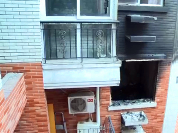 14楼1号这户人家的客厅、阳台受损较为严重。楼上邻居则是塑钢窗窗框被大火烧坏,玻璃炸开了几个大洞,其他邻居受到影响较小。