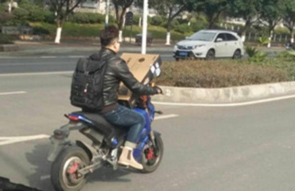 1月31日下午2点半,沙区110快处队民警秦明明、队员张鹏在大学城北路巡逻过程中,发现前方最左侧车道上有一辆飞驰的摩托车在车流中穿行,驾驶员不仅未戴头盔,还怀抱着一个大纸箱!吓得民警赶紧示意男子靠边停车。