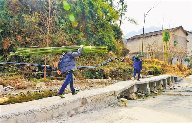 小桥修好后,村民再也不用蹚水过河了。