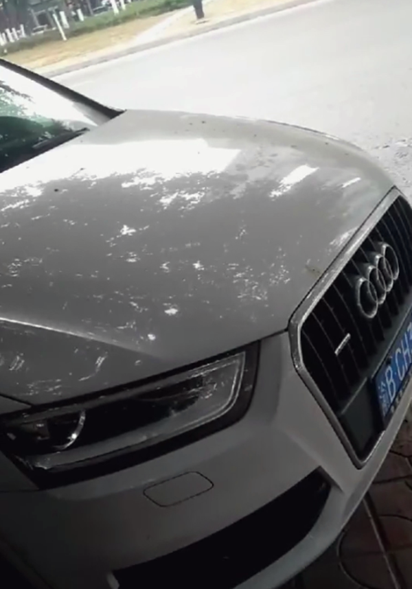 可走近一看,整个车顶、车窗上全是稀稀疏疏的鸟屎,简直是被包围了,黑的白的重叠在一起。