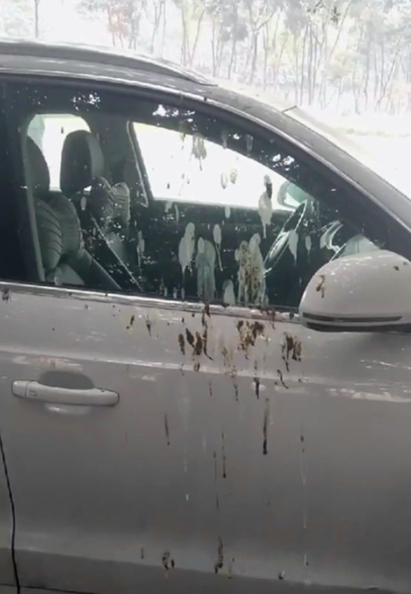 有的鸟屎很稀,落在车窗上,一路往下流,满满的全是印记,看着一片狼藉。