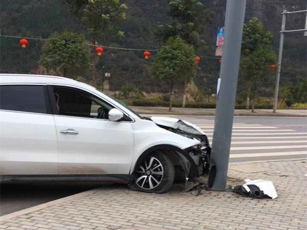 轿车撞上电线杆 车灯飞落爆了3个轮胎
