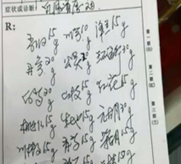 “吃了中药后的第一天脑袋昏,第二天乳房更加刺痛、腹泻不止,第三天身上长满红疹”,唐女士十分气愤,怀疑是吃了这个中药导致的,于是前去药房讨说法。