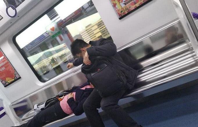 情侣把轻轨当成自家床 躺座位上安然入睡