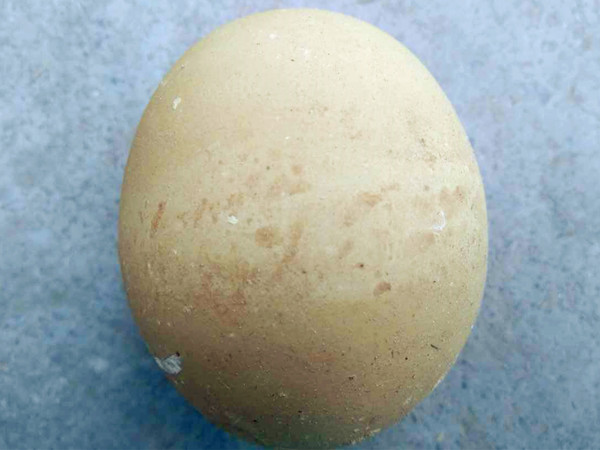 常见的鸡蛋与之比起来,整体呈乳白色,有着匀称的呼吸气孔遍布在蛋壳上,有些杂质也属常见。