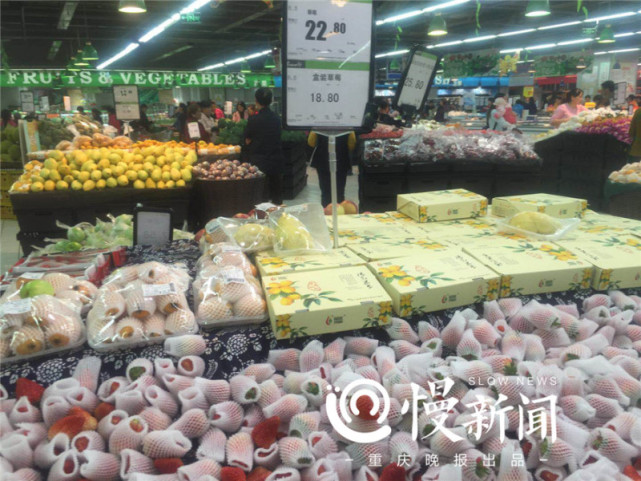 13日下午,记者走访了九龙坡、大渡口部分大型超市的水果销售区,草莓都摆在柜台显眼位置。导购员介绍,草莓作为应季水果,目前销售状况很好,又以盒装的巧克力草莓与散装带网套的草莓为最。