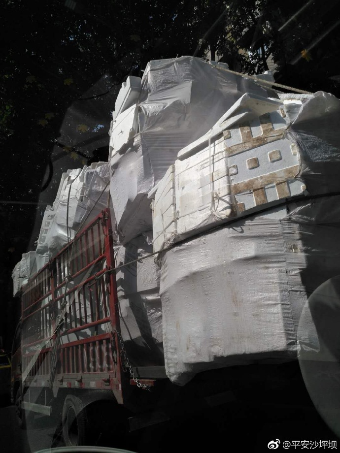 来自平安沙坪坝官微的消息:近日,沙区110快处队民警巡逻至天陈路附近时,发现一辆装着许多泡沫的超高货车摇摇晃晃地行驶在路上,十分危险。