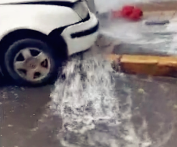 水流漫延到路面上,来往车辆不得不缓慢绕行,因为正值上班高峰期,引来不少好奇的市民驻足围观。