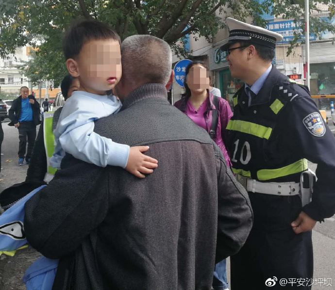 110民警接警后赶到现场,因孩子太小无法问出有用信息,民警抱起小轩将其带往辖区派出所核实是否有寻找孩子的警情。1小时后,小轩的外公闻讯赶来将孩子接走。