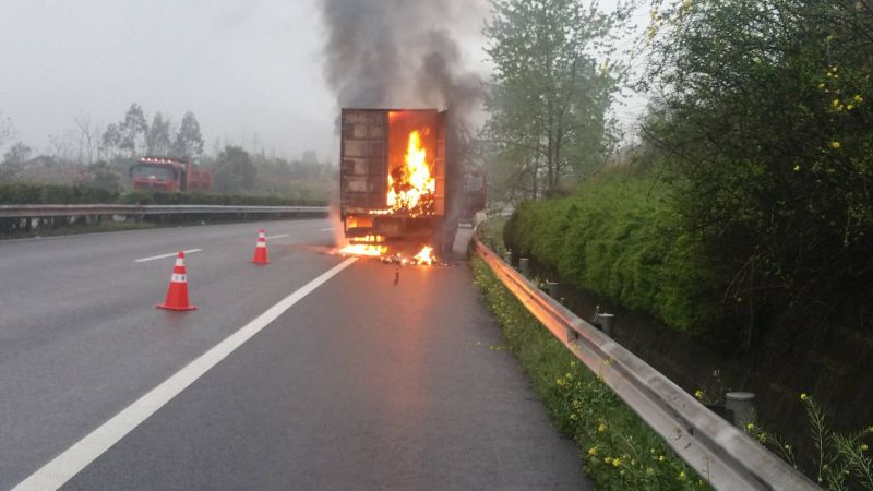 据高速执法部门介绍,今天早上7点左右,他们接到报警电话称,一辆大货车行驶至渝邻高速高嘴路段时,车辆突发自燃,请求救援。随后,执法部门立即联系了就近的消防部门,并迅速赶往事故现场。5分钟后,高速执法人员在事故现场看到,一辆满载货物的大货车被熊熊大火包围,火势迅速蔓延,十分危险。